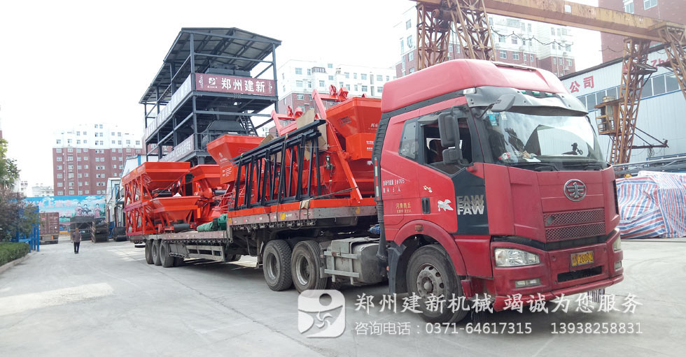 2017年9月24日,一台台搅拌机与配料机在运货司机以及建新发货人员、装货人员的共同努力下,如期的将建新生产的750混凝土搅拌机与800配料机设备批量发送至发送河南商丘,叙述此次发货已经是近三月内建新为商丘客户提供的第四批搅拌站设备。