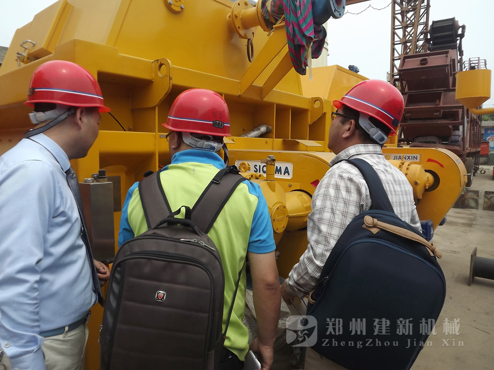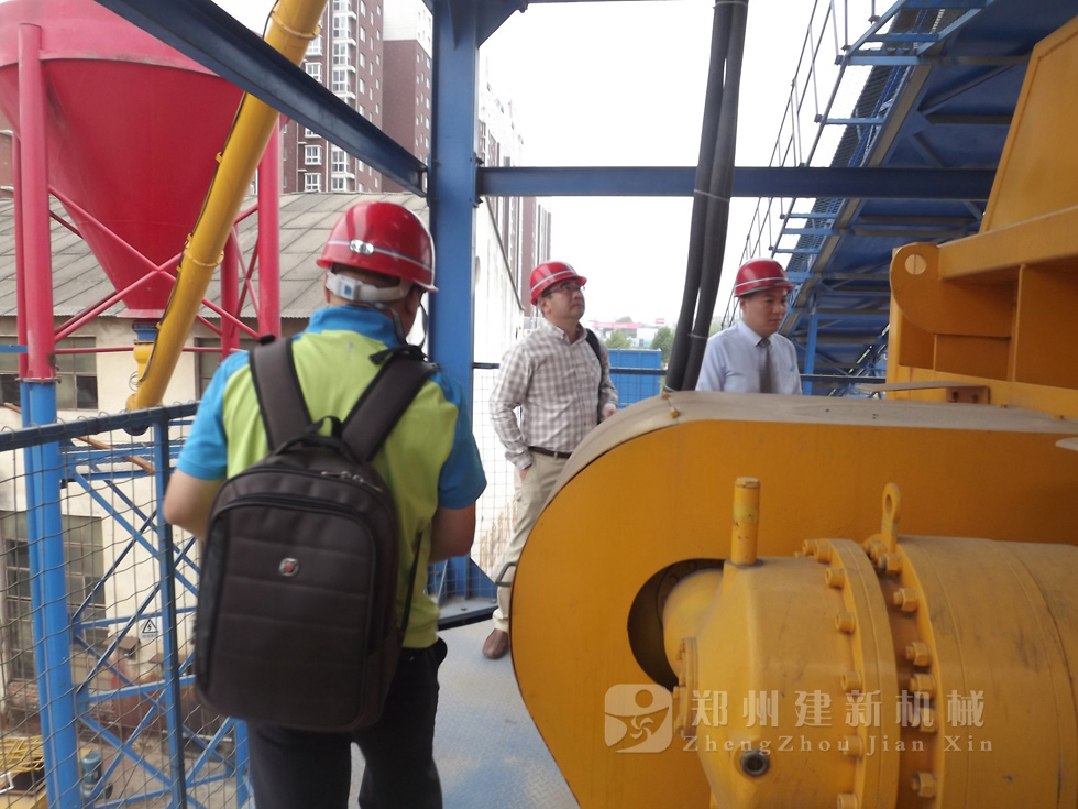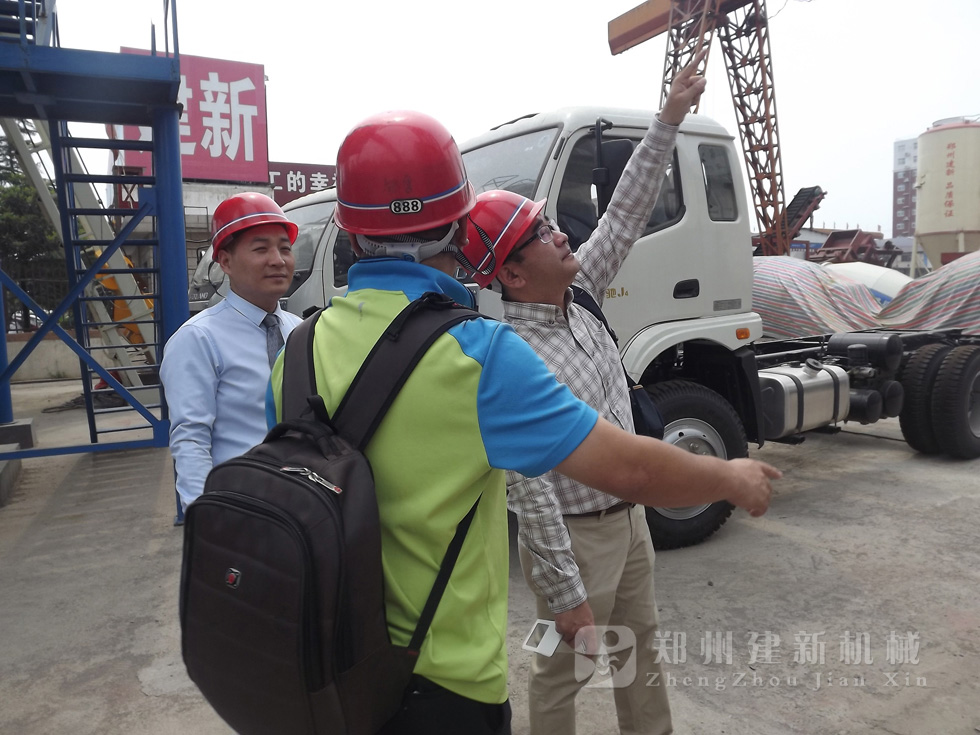 来自韩国的客户在建新外贸部人员的带下,参观了大型混凝土搅拌站的设备,建新公司精湛的工艺、合理的设计,客户赞不绝口,直挑大拇指。